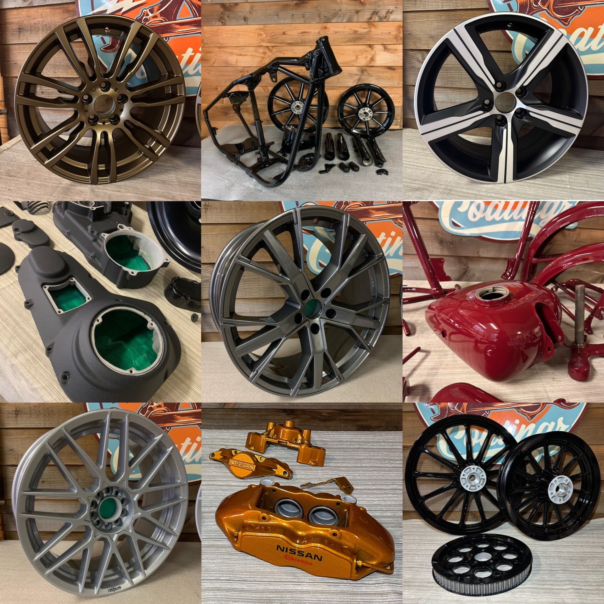 Wij zijn een klein bedrijfje dat gespecialiseerd is in het repareren van velgen en aanbrengen van verschillende soorten coatings voor auto en motor onderdelen.